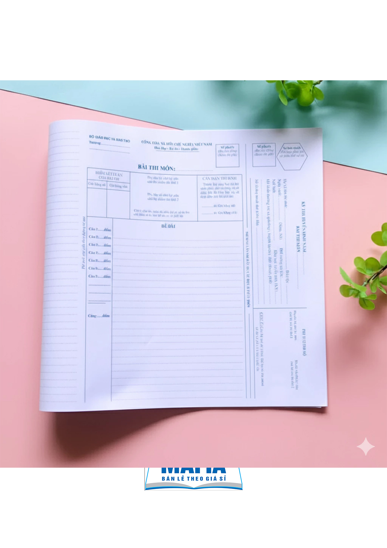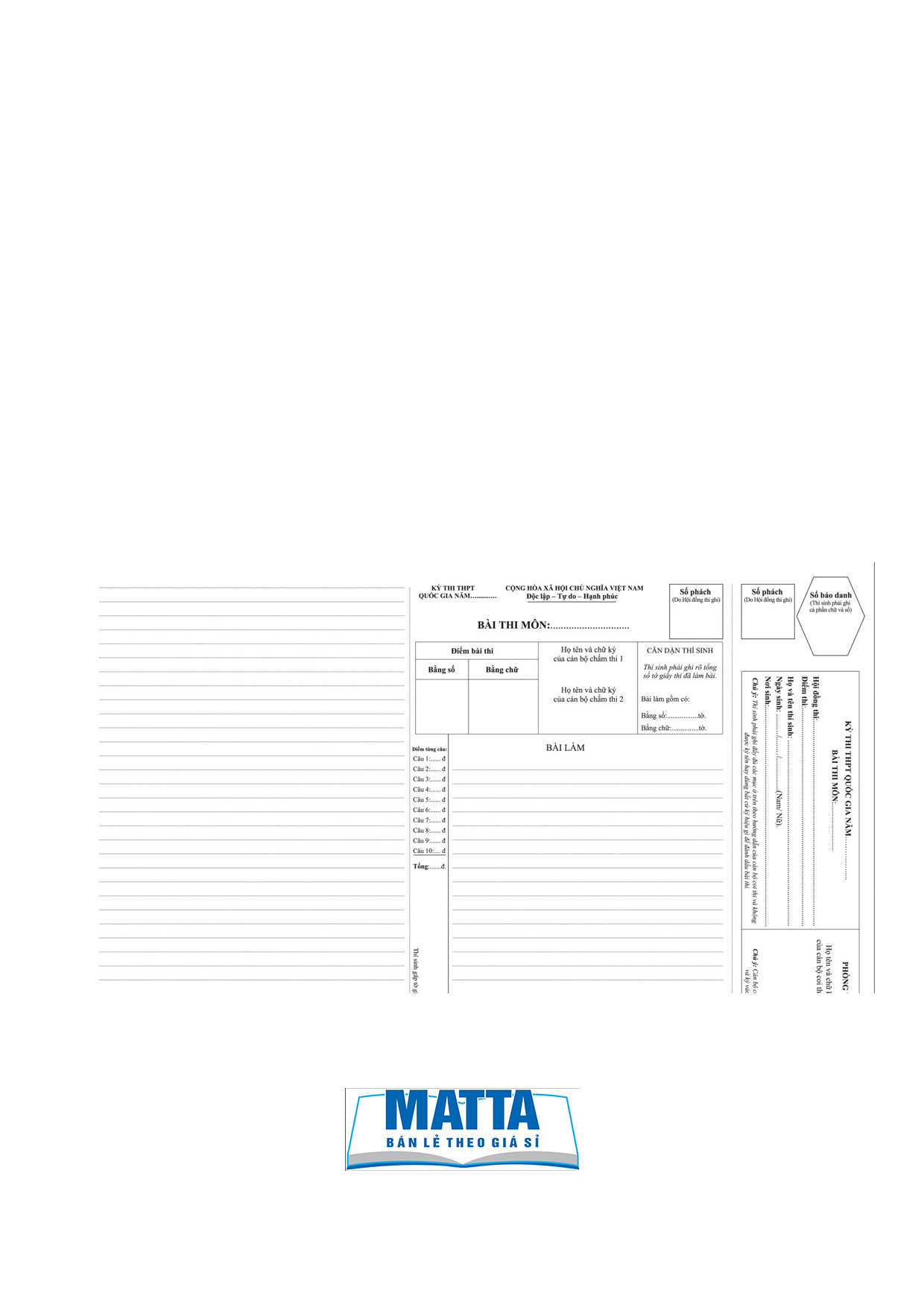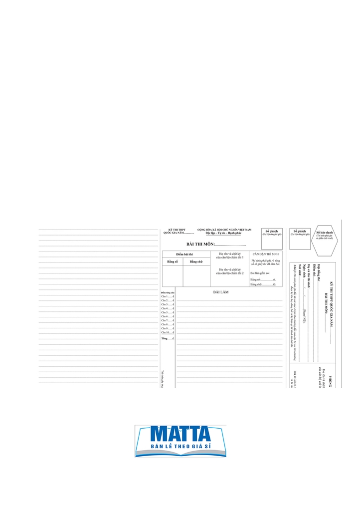 ✨ Đặc điểm nổi bật: Giấy thi A3 chất lượng cao, in rõ nét và dễ viết, dòng kẻ và chữ màu xanh chuẩn mẫu Bộ Giáo dục. Phù hợp cho các kỳ thi Đại học và THPT Quốc gia.